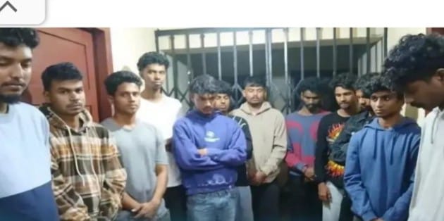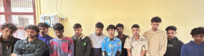 കൊച്ചി വൈപ്പിൻ സ്വദേശികളായ സയോൺ, ആദിത്യൻ,അതുൽ, വിഷ്ണു,അലറ്റ്, ഹാരിസ്,എമിൽസൺ, അമൽ,സിന്റോ, സാവിയോ,സൂരജ്, അശ്വിൻ എന്നിവരാണ് അറസ്റ്റിൽ ആയത്.