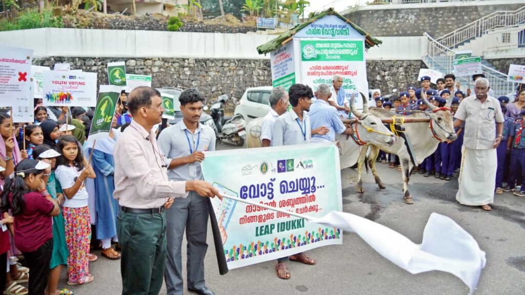 പഴയ കാലത്ത് ഗതാഗതത്തിനായി ഉപയോഗിച്ചിരുന്ന കാള വണ്ടിയില്‍ കോട്ടണ്‍ തുണിയില്‍ എഴുതി തയ്യാറാക്കിയ സന്ദേശ ബോര്‍ഡുകളും പനയോല മേഞ്ഞു തയാറാക്കിയ മേല്‍ക്കൂരയുമൊക്കെയായി മണ്‍മറഞ്ഞ കാലത്തിന്റെ സ്മൃതികള്‍ ഉണര്‍ത്തുന്ന കാള വണ്ടിയാണ് ഹരിത വോട്ട് വണ്ടിയായി മാറിയത്.